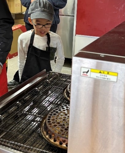 体験終了時には店長バッチをもらいました。バッチを付けてもう1回、記念写真!