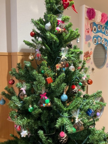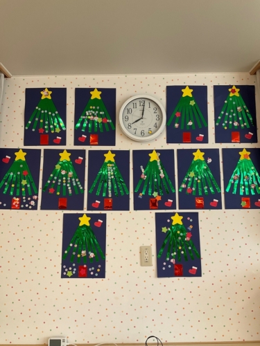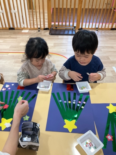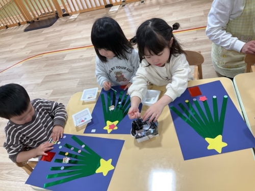 保育園でもクリスマスに向けてツリーの製作を行いました。