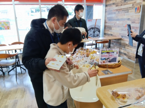 11/12(水)黒瀬特別支援学校中学部第2学年の生徒15名が、平成会宮領拠点事業所の見学に来られました。教員の入野先生より、「卒業後の進路について考えたい」「パンの購入を通じて買い物学習を行いたい」との依頼があり、今回の見学会を実施することとなりました。