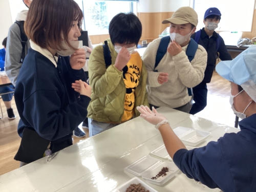 今回の見学会を通して、生徒さん達が作業を興味深く見学されている様子が印象に残りました。各事業所の職員も紙芝居を用いた説明や、カカオ豆の香りを嗅ぐ体験など、分かりやすく丁寧な説明をしていただき、卒業後の進路を考える上での手助けとなったように感じます。私たちも相談支援事業所として、学校生活の中で本人が決めた進路の実現に向けて、間接支援を通じてそっと背中を押せる相談員で在りたいと思います。