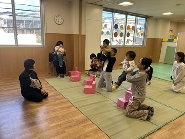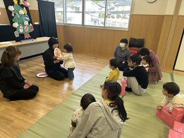 その後、大型絵本や絵本のふれあい遊びで楽しい時間を過ごしました。