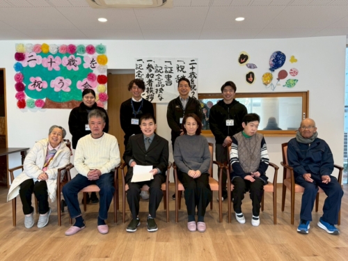 1月24日(土)、地域サロンにてあさひに通われている利用者の方の成人を祝し、ご家族にもご参加いただき「20歳を祝う会」を開催しました!