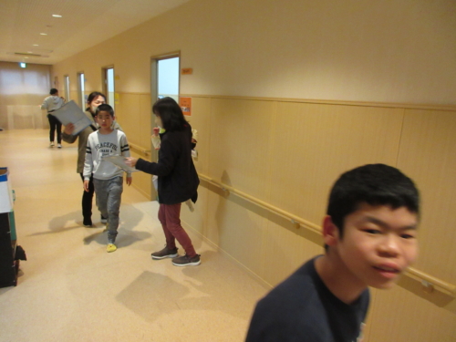 〇雨だったため玄関フロアに避難集合しました。