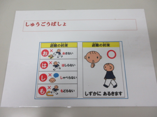 移動の途中で少し戸惑う様子が見られたお子さまには、避難訓練カードを手渡すことで安心して行動することができました。