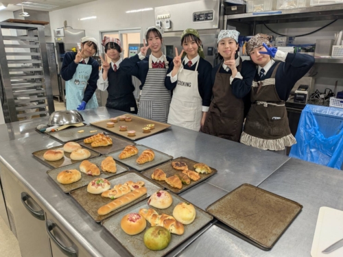 コラボパンの開発では、生徒さんが事前に考えたパンを実際にあおぞらぱん屋さんの作業場で試作し、みんなで試食をして販売する商品を決めました。