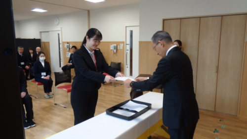 辞令を交付されると、真剣な眼差しで受け取られる新人職員さんを見て、これから一緒に働く事がより一層楽しみになりました。