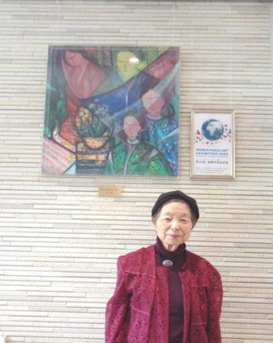 このたび、日本国際美術家協会会員で東広島市を拠点に活動される著名な画家、児玉伸子先生より絵画をご寄贈いただきました。源氏物語の世界観を描いたこの絵画は、第32回国際平和美術展にも出品され、「永遠の平和を語り継ぐ大作」として紹介された一枚です。日本文学に深く根ざしたテーマを油彩などの技法で描く作風が特徴的な先生の絵画から、千年前の源氏物語の世界に思いを馳せてみませんか。前回ご寄贈いただいた絵画とともに、ご寄贈いただきました絵画は、宮領ワークセンターにて大切に展示・保管させていただきます。たいへん貴重な絵画をご寄贈いただき、感謝申し上げます。