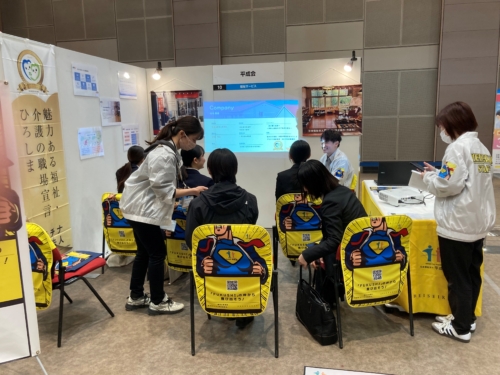 当日は学生さんの来場者が比較的少ない状況でしたが、平成会のブースにも何人も来ていただき、法人の事業やこれから開催するインターンシップの話を真剣に聞いていただけました。
